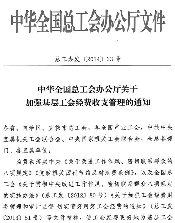 现将《中华全国总工会办公厅关于加强基层工会经费收支管理的通知》的通知转发给你们,请遵照执行。