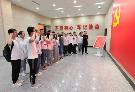 在入党誓词展区,全体党员高举右拳庄严宣誓,重温入党誓词。