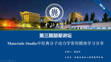 范家珂同学从软件的操作讲起,为同学们演示了经典分子模型的构建及分子动力学模拟中的常用模块。讲座持续2个多小时,同学们听得收获满满,并纷纷向范家珂同学请教自己在学习的过程中产生的疑问,范家珂同学一一作答。