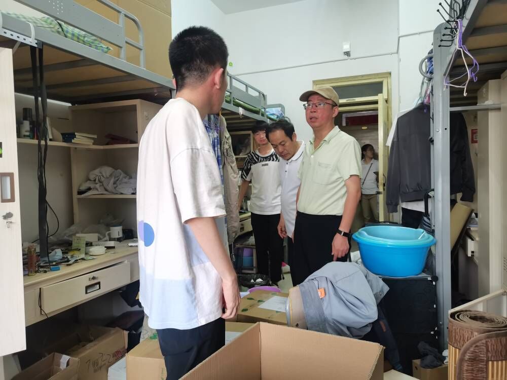 2022年6月13日下午,华人策略社区官方网站党委副书记张少明、副院长曹雄携2022届毕业班班主任、辅导员深入学生宿舍,为毕业生送行。