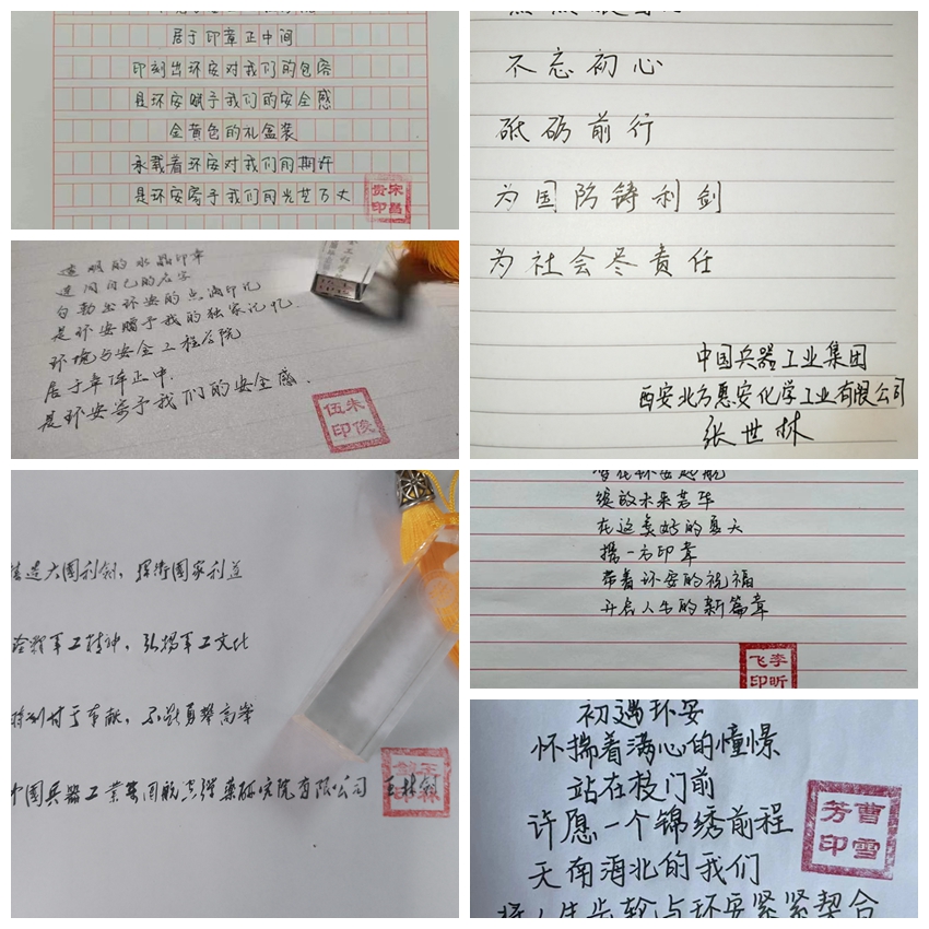即将前往中国兵器工业集团西安北方惠安化学工业有限公司就职的张世林同学写到“深深中北情、熊熊报国志、不忘初心、砥砺前行、为国防铸利剑,为社会尽责任”;前往中国兵器工业集团航空弹药研究院有限公司就职的王林剑同学写到“铸造大国利剑、捍卫国家利益,诠释军工精神、弘扬军工文化,时刻甘于奉献、不断勇攀高峰。”