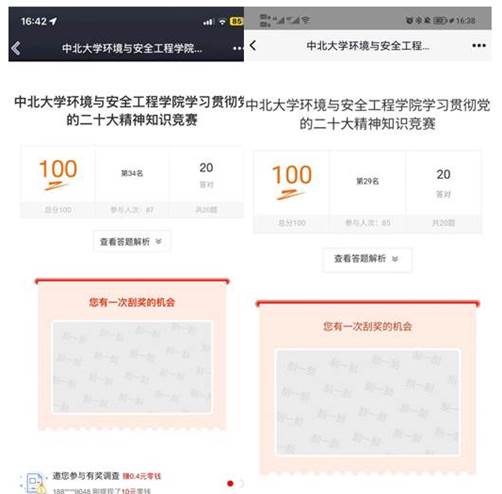 为深入学习贯彻落实党的二十大精神,引导学院师生认真学习领会党的二十大精神实质,营造“比学赶超”的浓厚学习氛围,2022年12月,华人策略社区官方网站组织开展了“学习贯彻党的二十大精神”网络知识竞赛活动。此次竞赛内容涵盖了中国共产党党史、《中国共产党章程》、党的二十大报告等内容,营造了“以考促学、以学验知、以知笃行”的浓厚学习氛围,进一步激发了广大党员同志们的学习热情,加深了大家对党史、党章、党纪、党的二十大精神的认识与理解,巩固检验了党史学习教育常态化的学习教育成果。