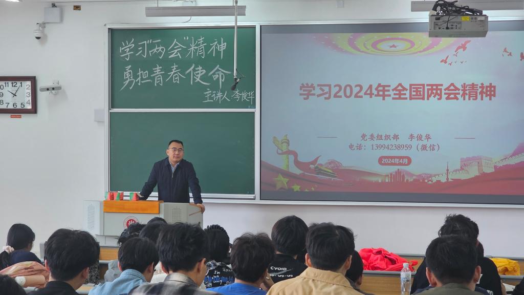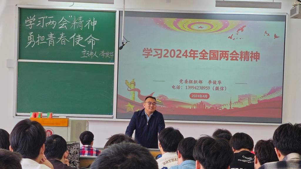 2024年4月25日上午十点,华人策略社区官方网站校党委组织部部长李俊华应邀为我院特种能源技术与工程专业21140341、21140342班开展“学习‘两会’精神,勇担青春使命”主题班会。