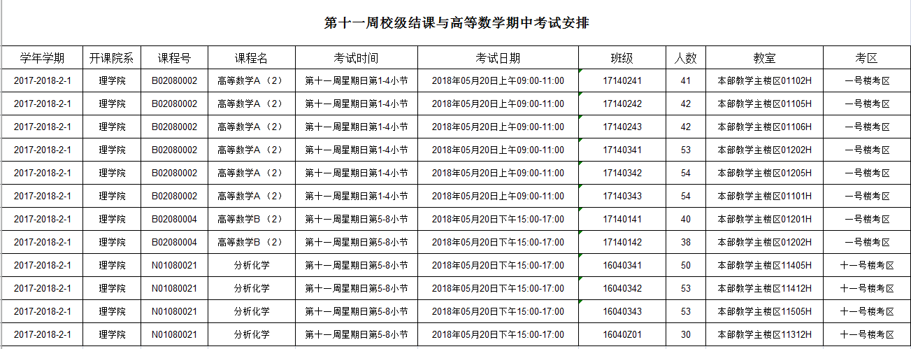 第11周校级结课与高等数学期中考试安排
