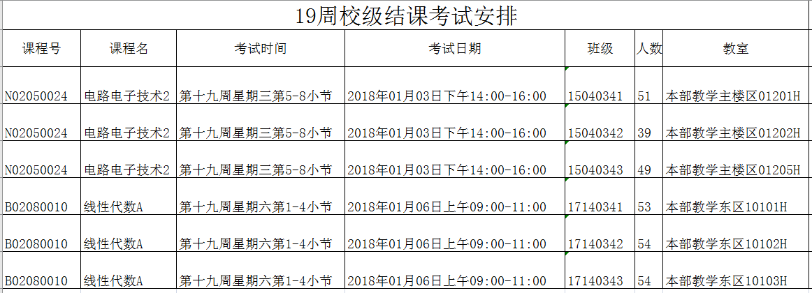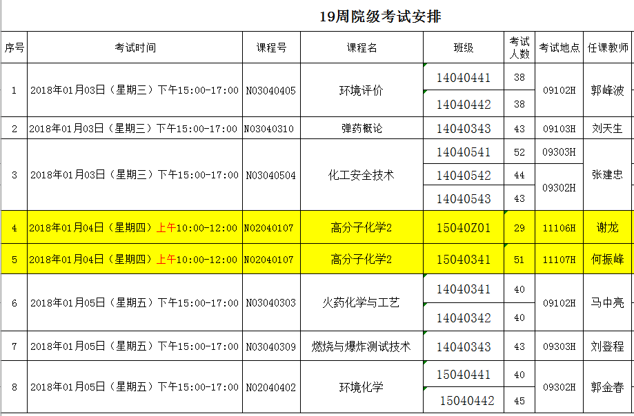 19周院级、校级考试安排