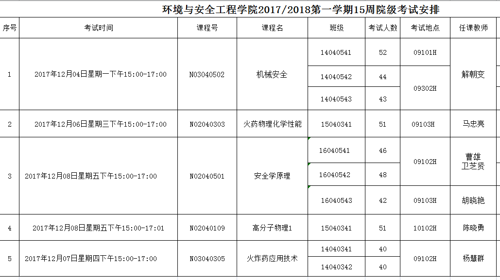 15周院级考试安排
